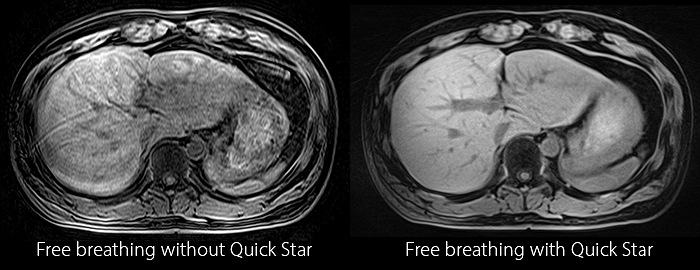 Quick Star reduced motion artifacts can be helpful for challenging patients that have difficulty holding their breath or especially for liver examination.