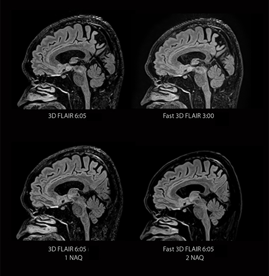 The technology based on FSE2D achieves consistent fat suppression and homogeneity while acquiring four different tissue contrasts in one scan, reducing the total number of scans you need to acquire.