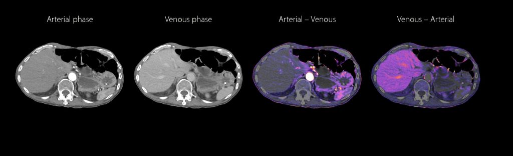 Aquilion Prime SP empowers your ability to detect, stage and track tumors with color iodine maps* available for every routine multi-phased liver exam.