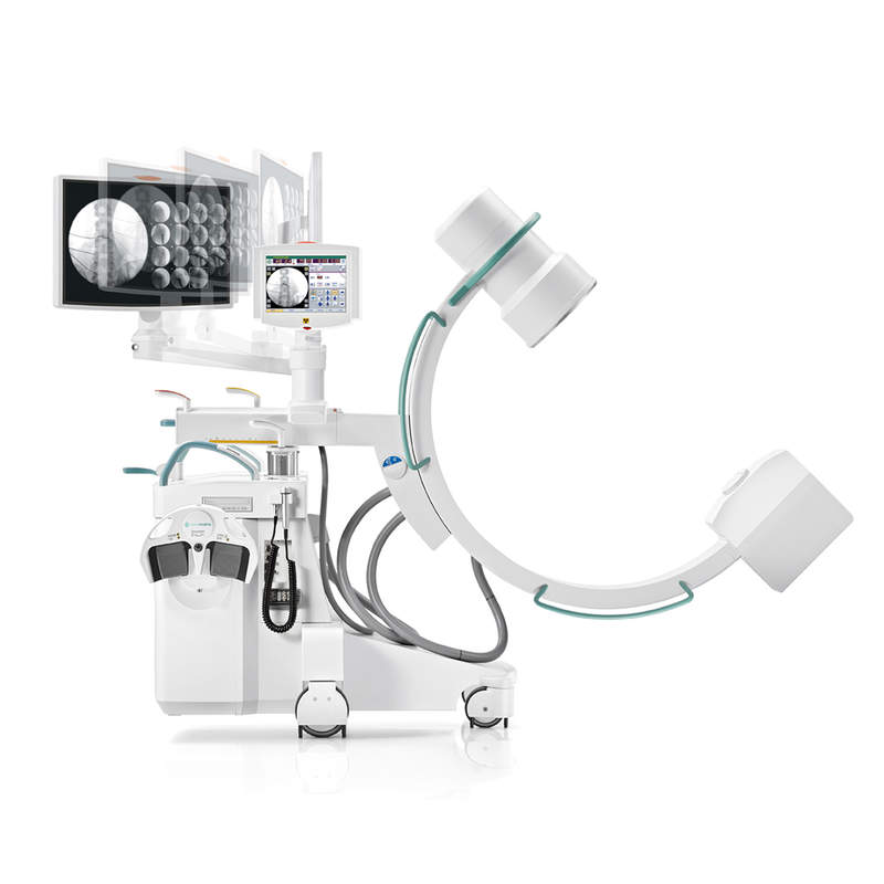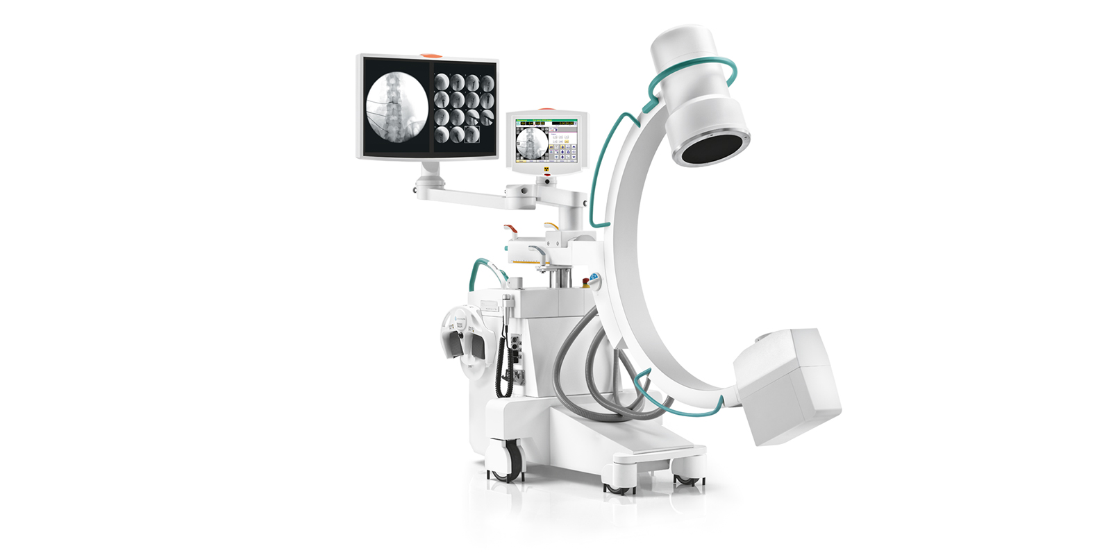 - Compact design with 27" splitscreen, flatscreen monitor or 19" dual flatscreen monitor mounted on the C-arm
